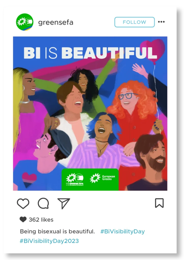 Bi visibility and representation are important because they let bi people know that they are seen and loved by both their LGBTIQA+ community and by straight allies.