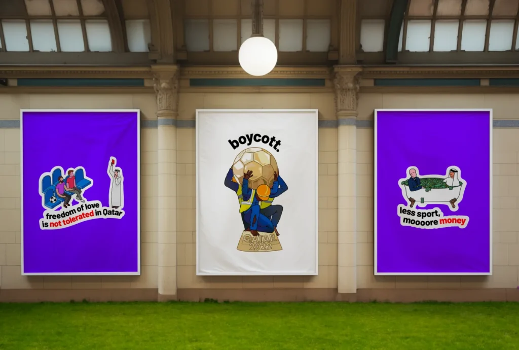 In light of the alarming reports emerging from the football World Cup in Qatar, including widespread human rights violations and controversy surrounding the event, our agency felt compelled to take a stand. We took proactive action by designing a comprehensive boycott campaign, disseminated across various cities, bars, social media, public transportation networks. Through strategic messaging and impactful visuals, we aimed to raise awareness and mobilize support for ethical and responsible sporting events. Our campaign serves as a testament to our commitment to social responsibility and advocacy for human rights in all facets of life.