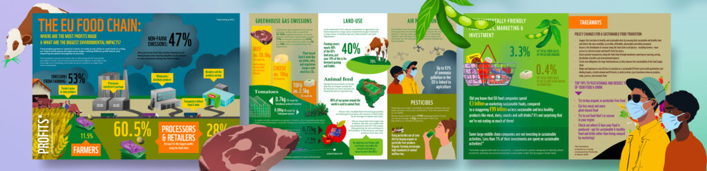 From farm to the table, our food passes through many different stages impacting the planet on its journey. This #Eat4Change factsheet delves into emissions, pesticides, air pollution, land use and it takes a look at sales, marketing and more!